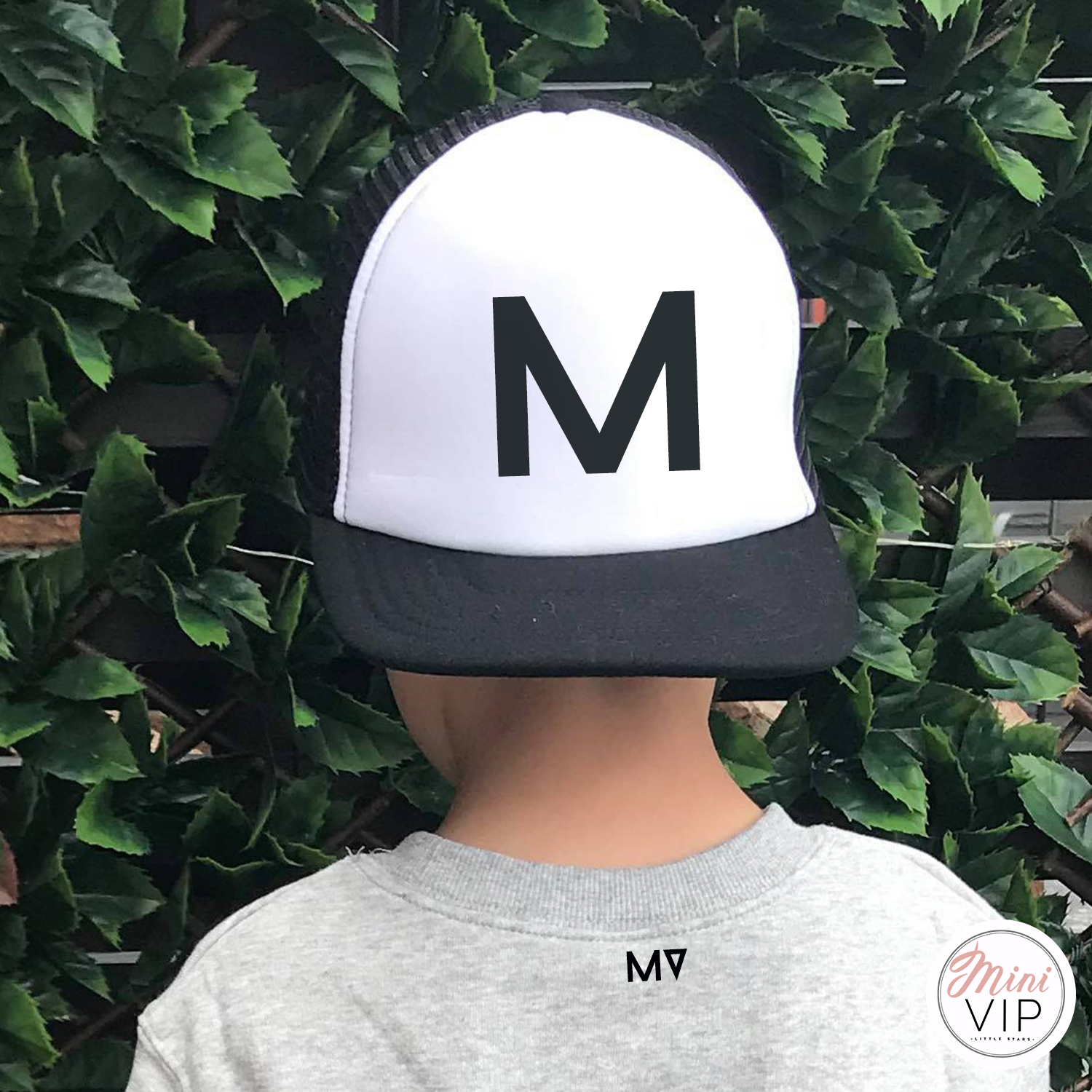 Personalised Initial Block Black/White Trucker Cap - Junior Size