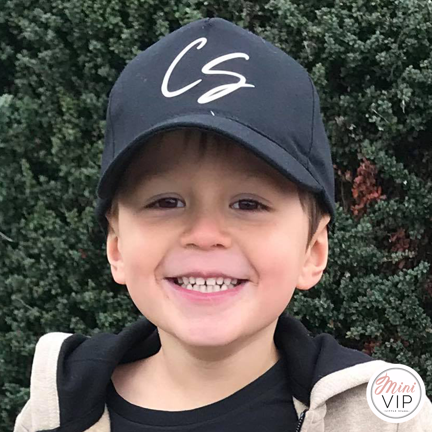 Personalised Oatmeal Calligraphy Initials Black Cap - Junior Size