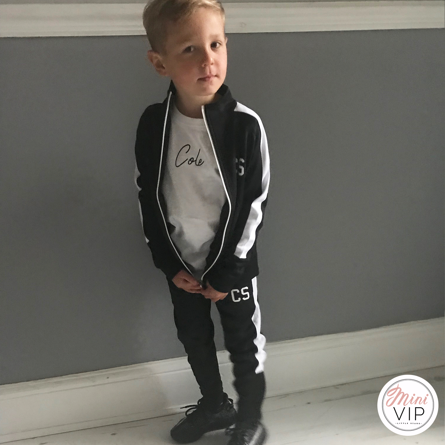Black & White Stripe Premium Tracksuit - personalised with any initials (upto 4 characters)