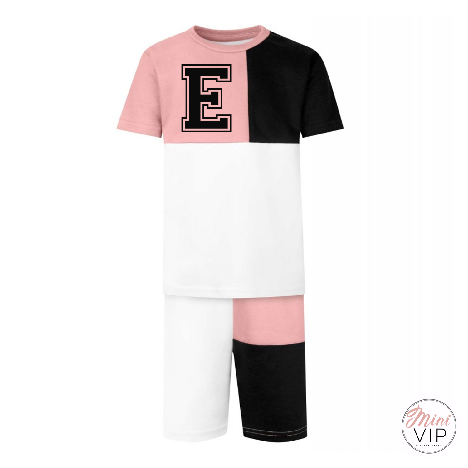 Dusty Pink Panel Varsity Short & T-Shirt Set