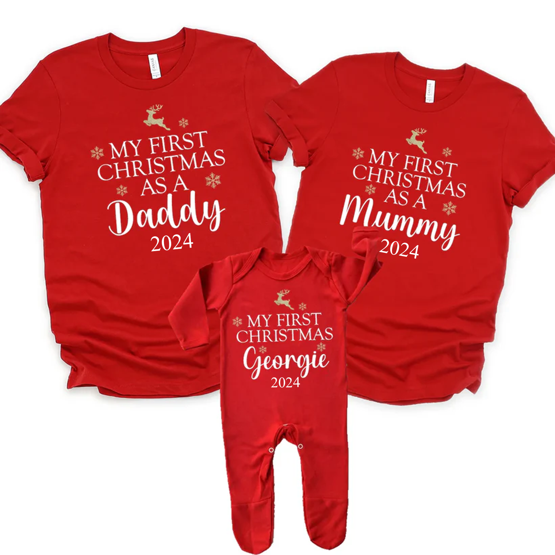First Christmas Family Twinning Red - As Mummy As Daddy - Personalise to suit!