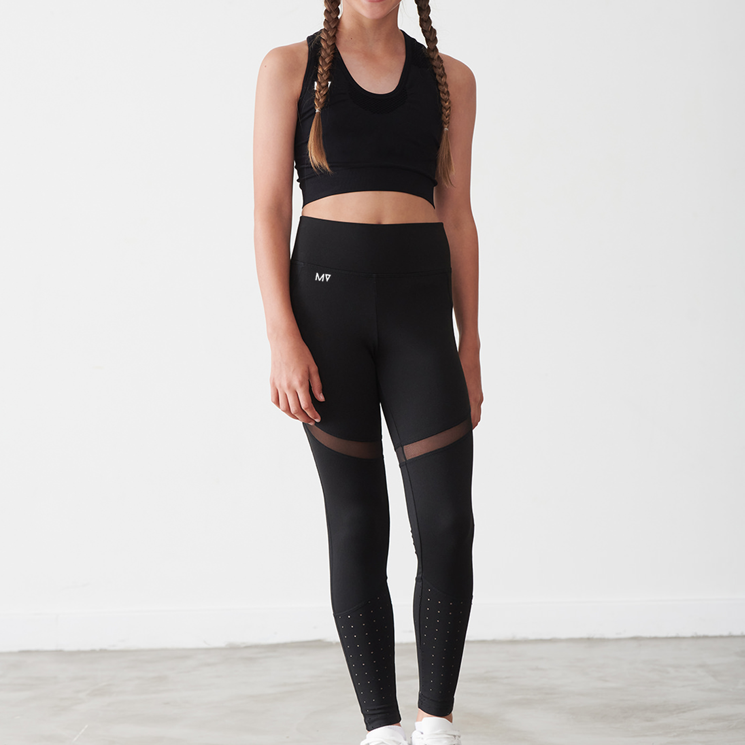 Make a statement with the new mini-version MV sports set. The on-trend mesh and innovative laser cut panels give superior styling, while the high waistband and opaque fabric make them the perfect choice for any dance class, play leisure wear. The active crop top features a seamless knit for comfort and the self-fabric mesh helps to keep you cool and on-trend.