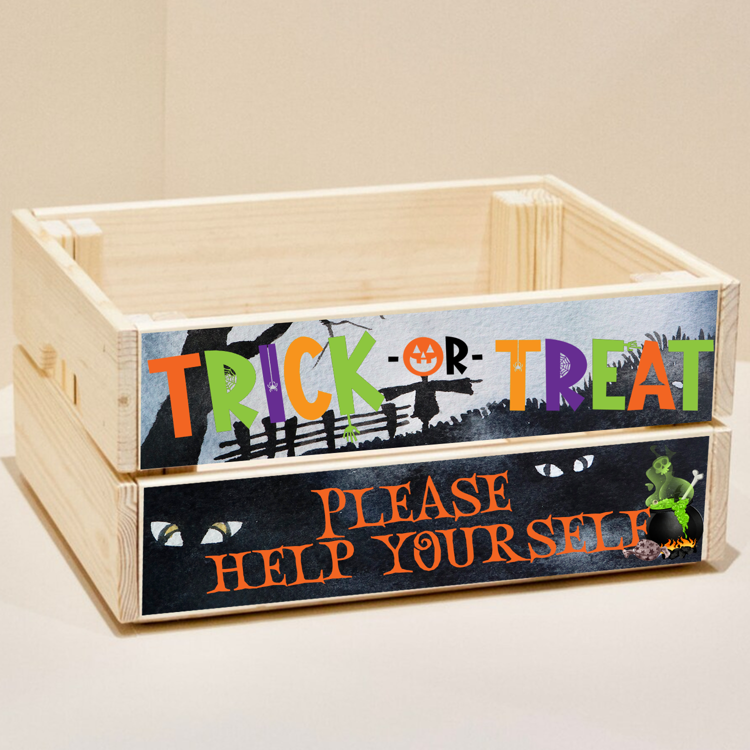Halloween Trick or Treat Wooden Crate - Please Help Yourself Box