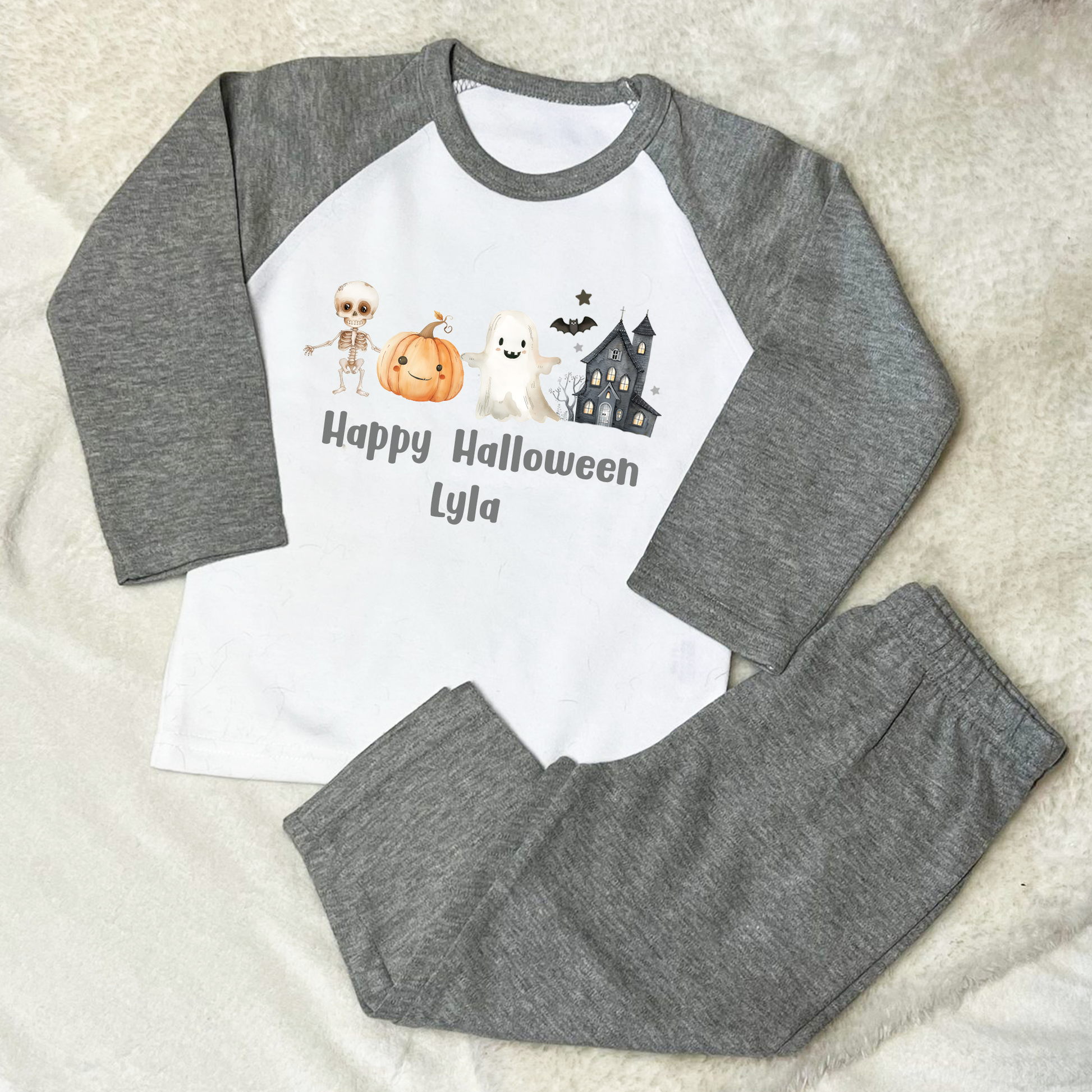 Happy Halloween Grey PJs Pyjamas - personalisation optional