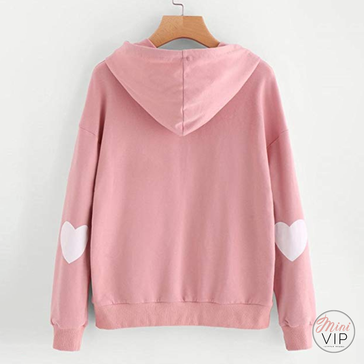 Adorable cute dusty pink hoodie with heart print sleeves.