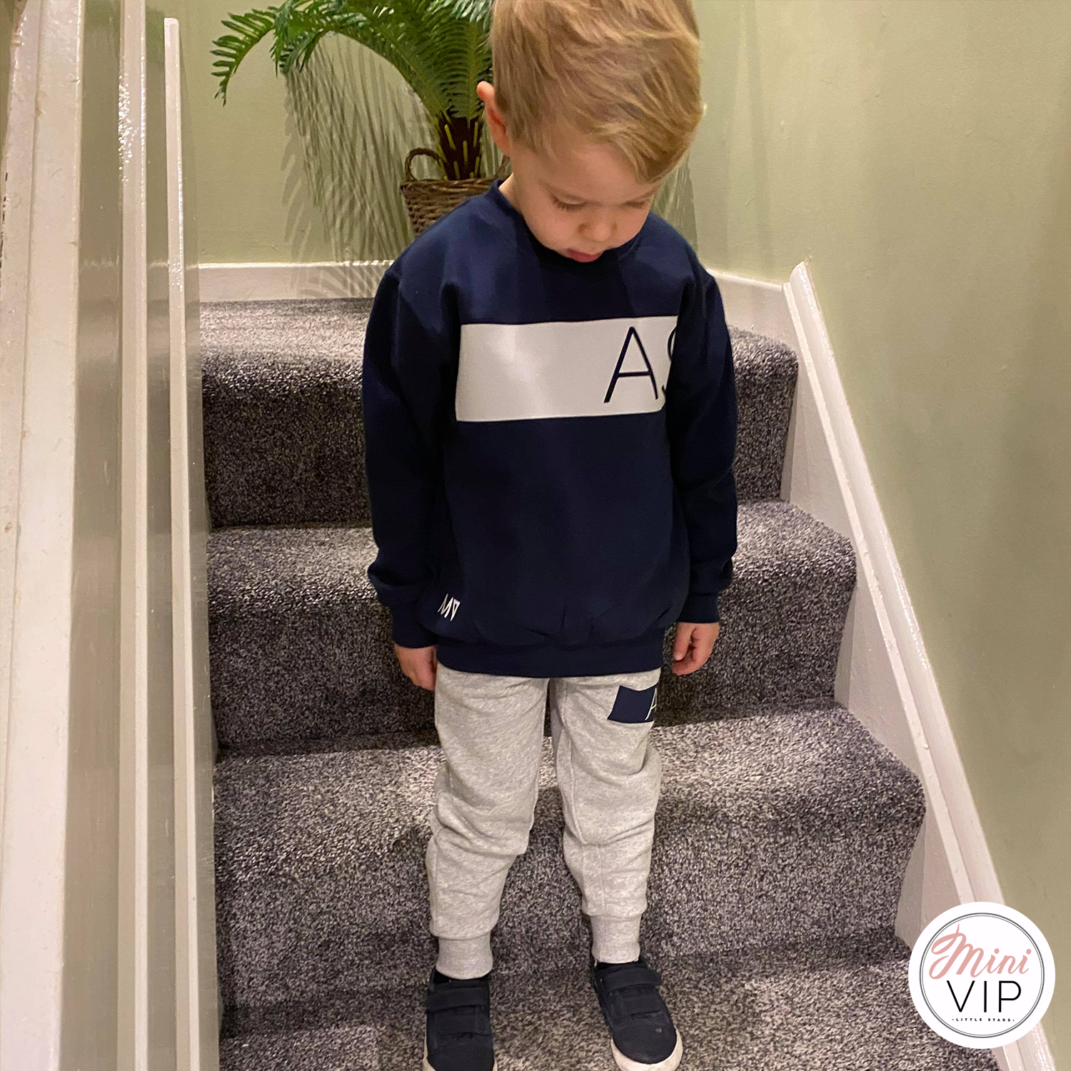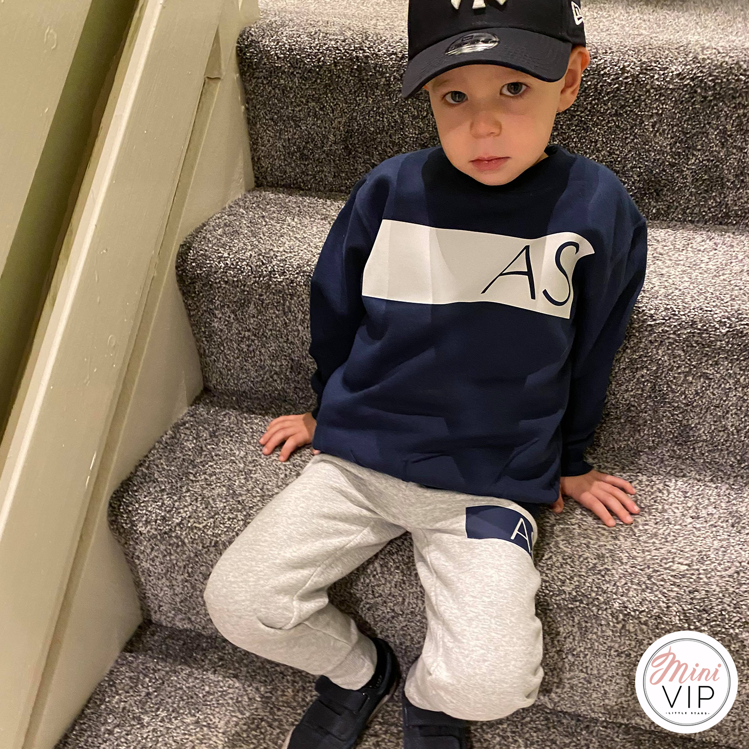 Navy/Grey Block Initials Personalised Tracksuit Lounge Set