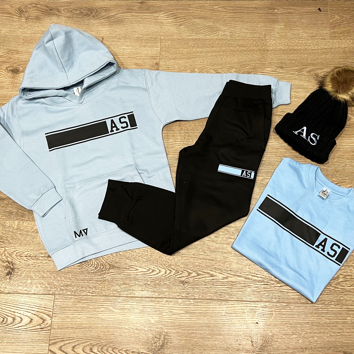 Personalised Baby Blue & Black MiniVIP© Block Tracksuit Lounge Set