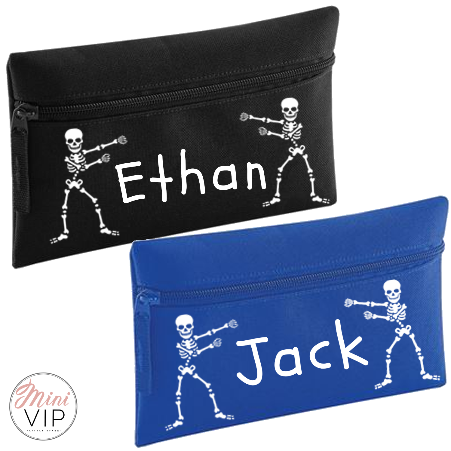 Personalised Flossin' Skeleton Pencil Case - choice of 2 colours.