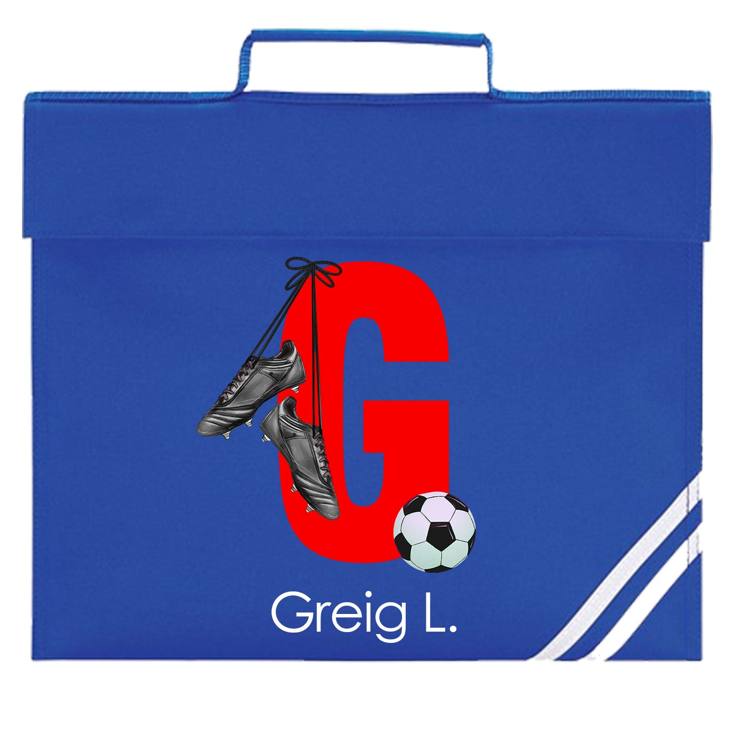 Personalised Football Initial & Name Book/Homework Bag. Choice of colours & options