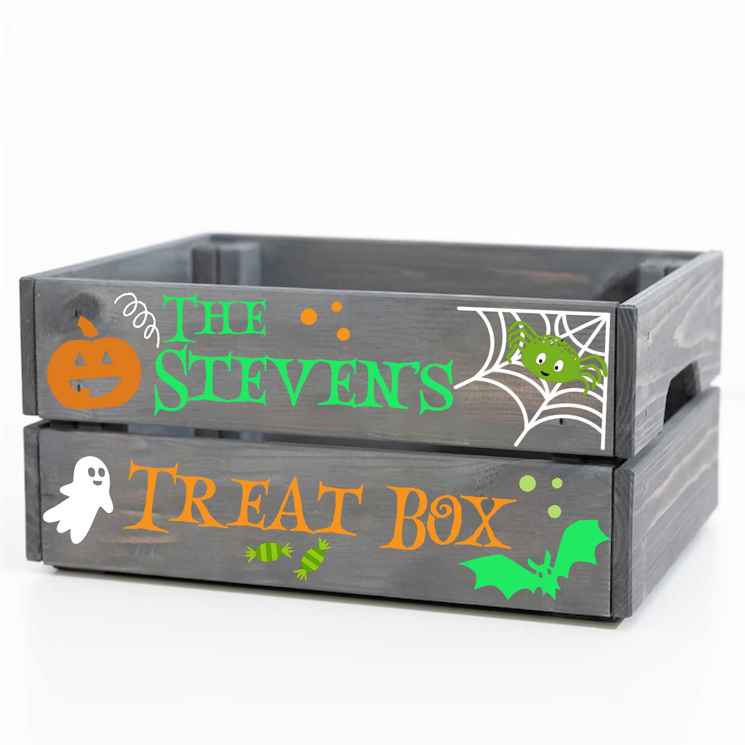 Personalised Halloween Grey Wooden Crate - perfect for Tricks & Treats!