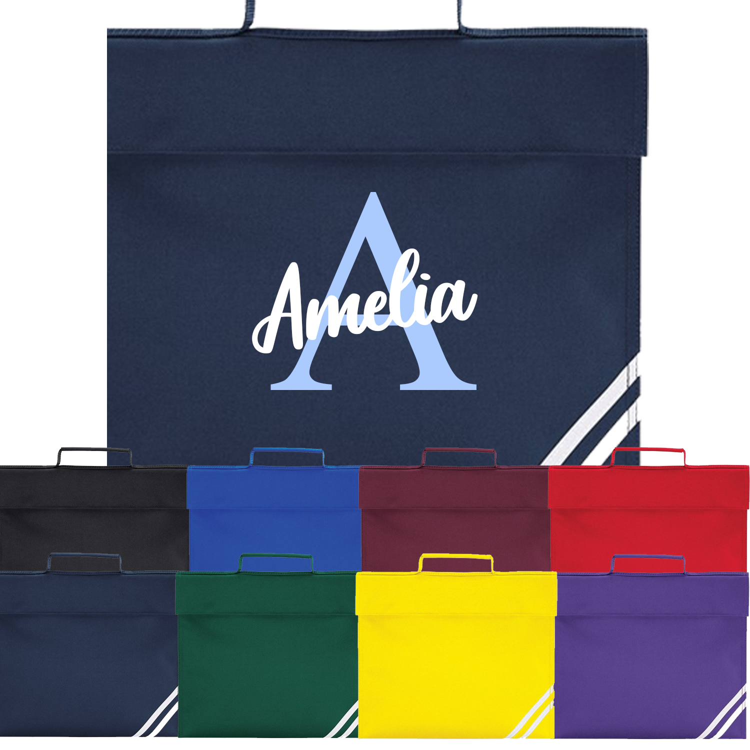 Personalised Initial & Script Name Book/Homework Bag. Choice of colours & options
