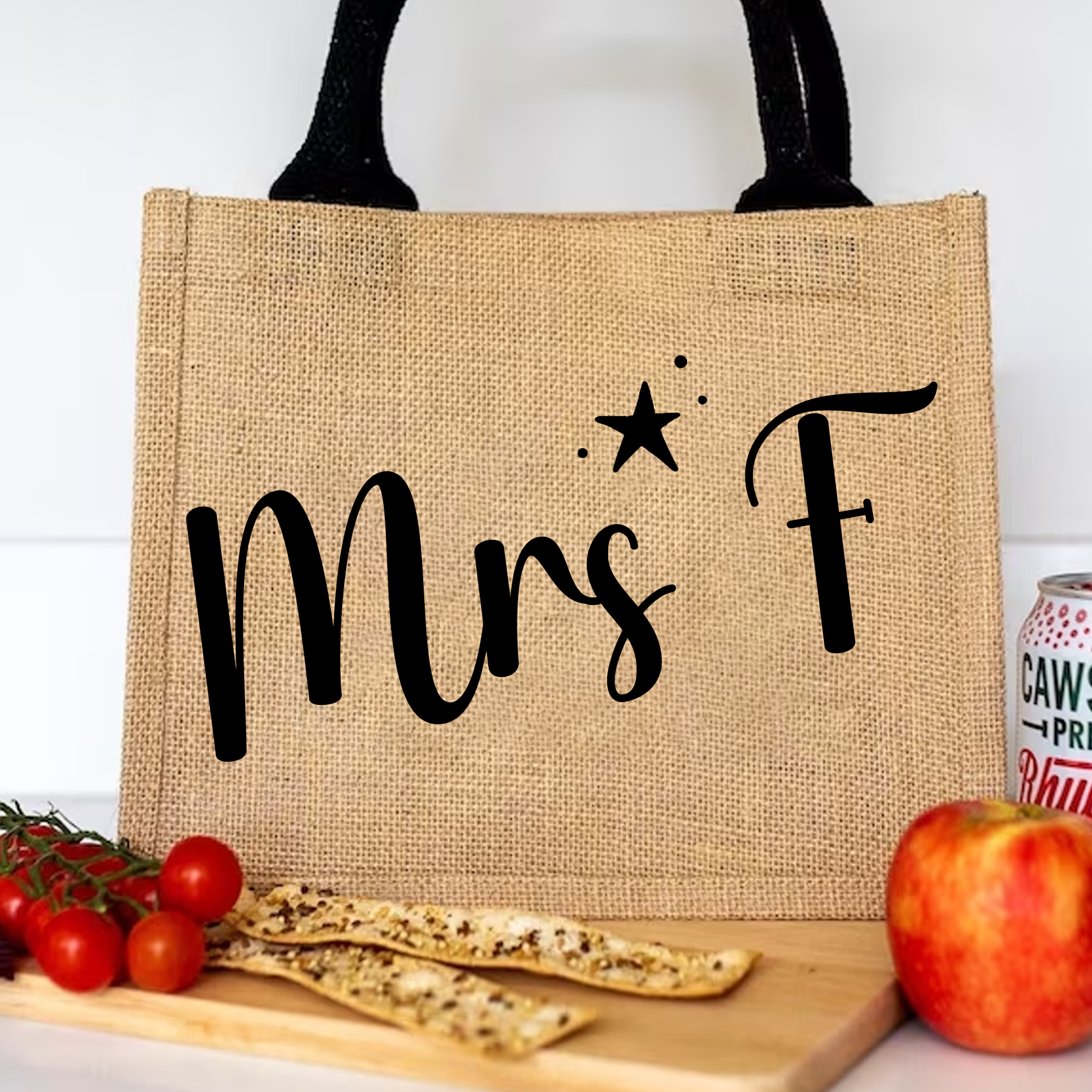 Personalised Mini Jute Lunch Bag Star Design - Teacher Gift