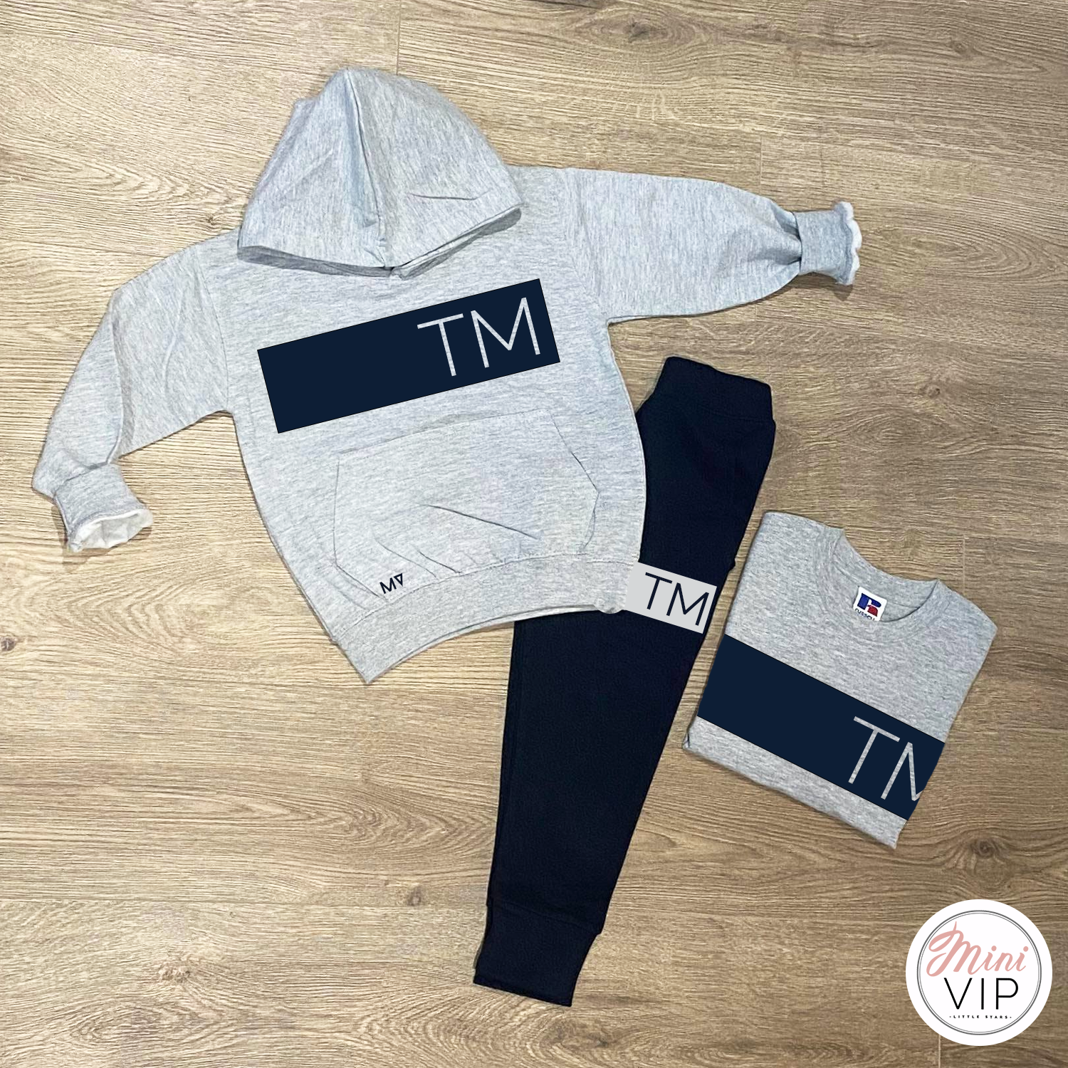 Personalised Navy / Grey Hoodie Tracksuit Lounge Set