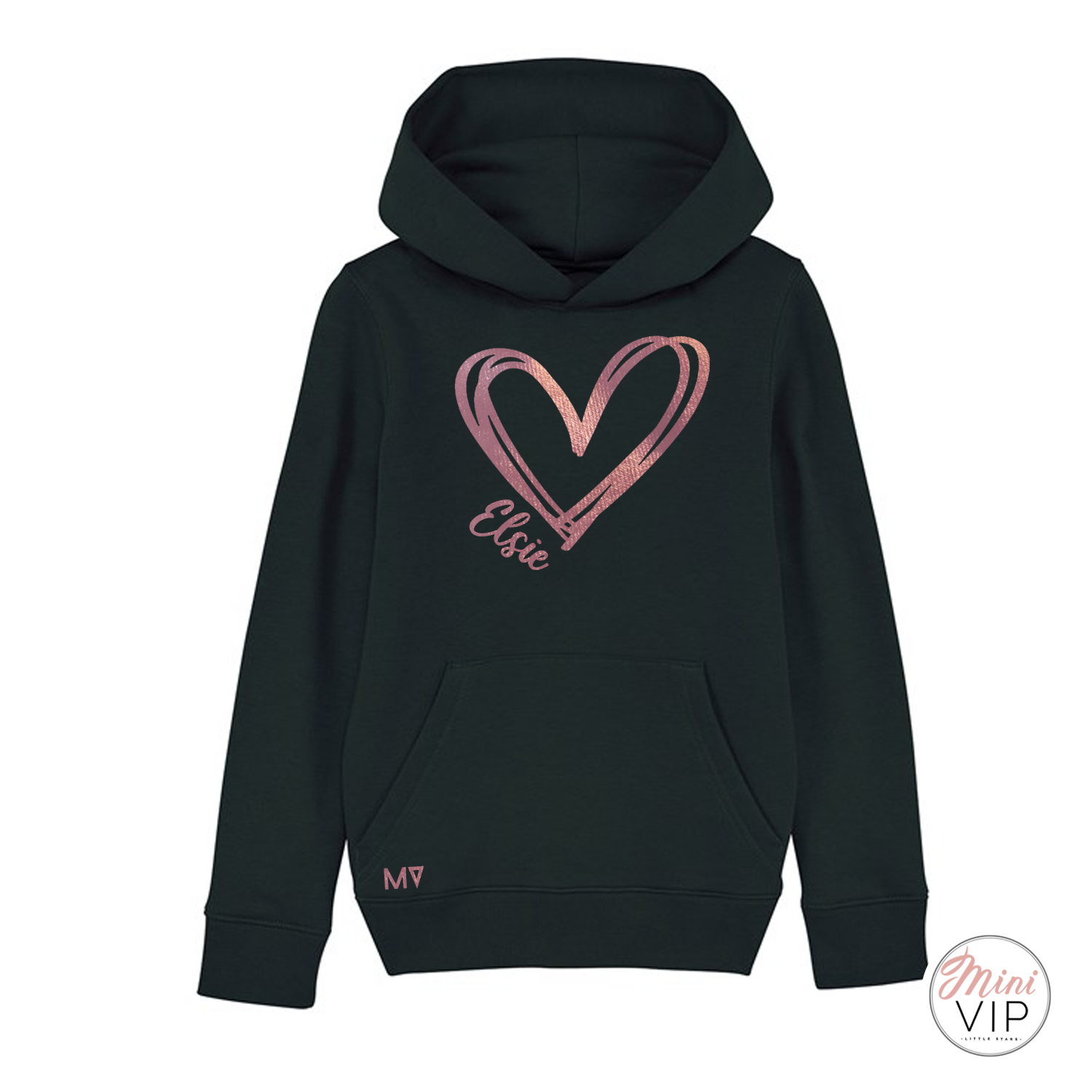 Personalised Rose Gold Heart Mini VIP Black Hoodie
