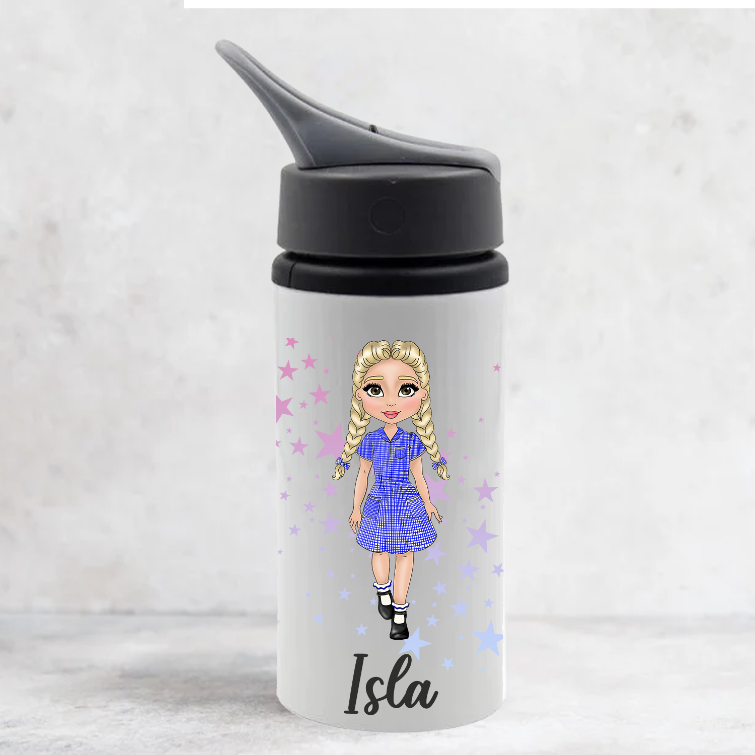 Personalised School Girl Character with Braids - Water Bottle - 650ml