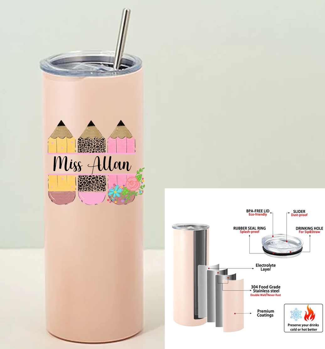 Personalised Teacher Double Walled Insulated Thermal Tumbler Cup w/ Metal Straw