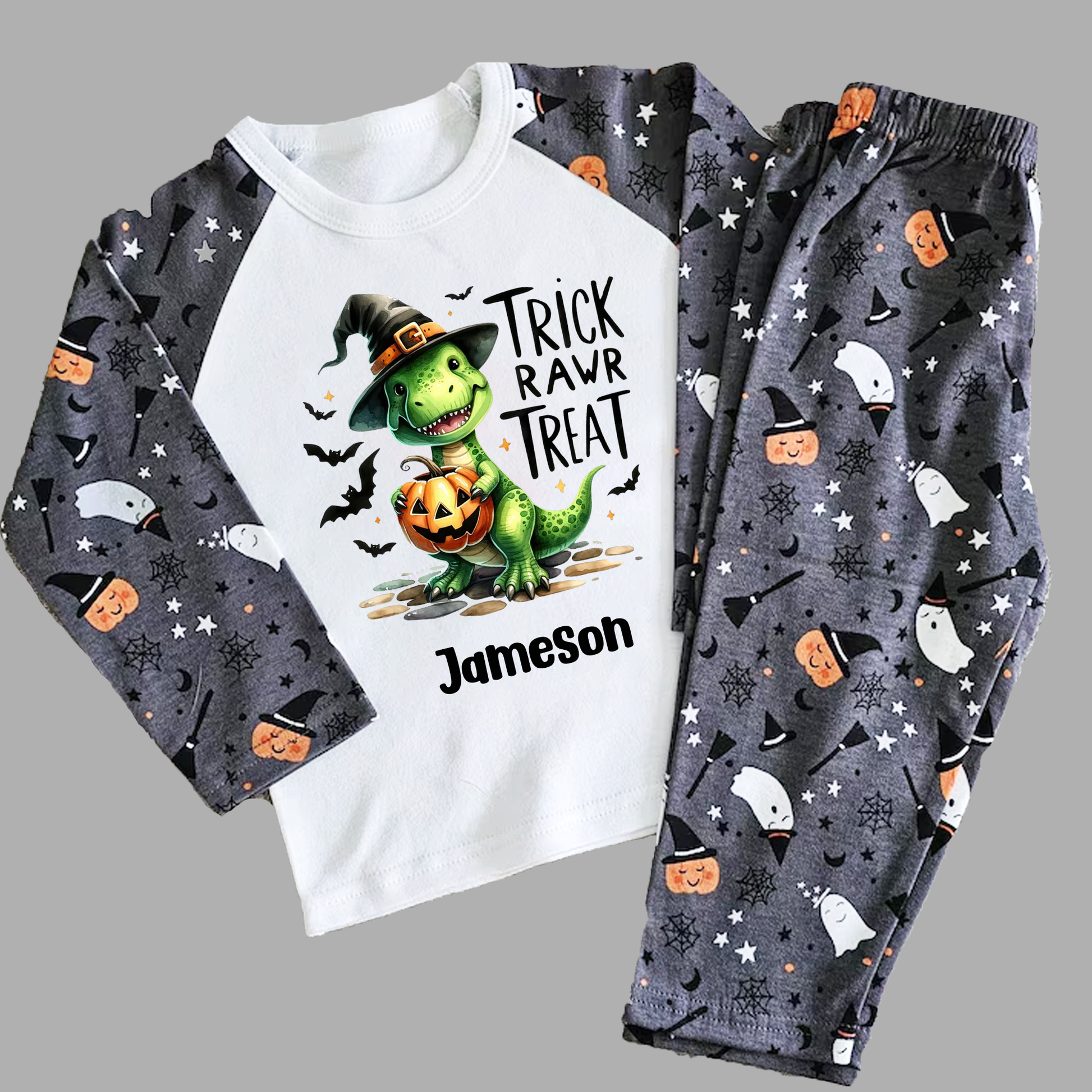 Personalised Trick RawrTreat Halloween Dinosaur PJS Pyjamas
