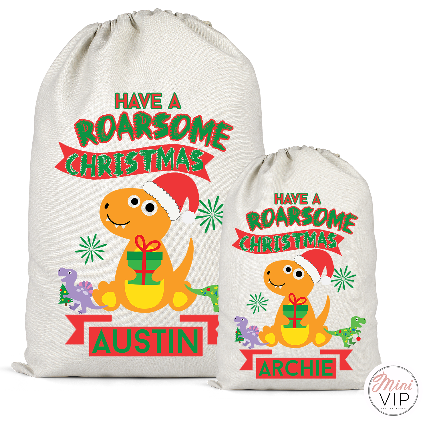 Roarsome Christmas Dinosaur Personalised Cotton Santa Sack