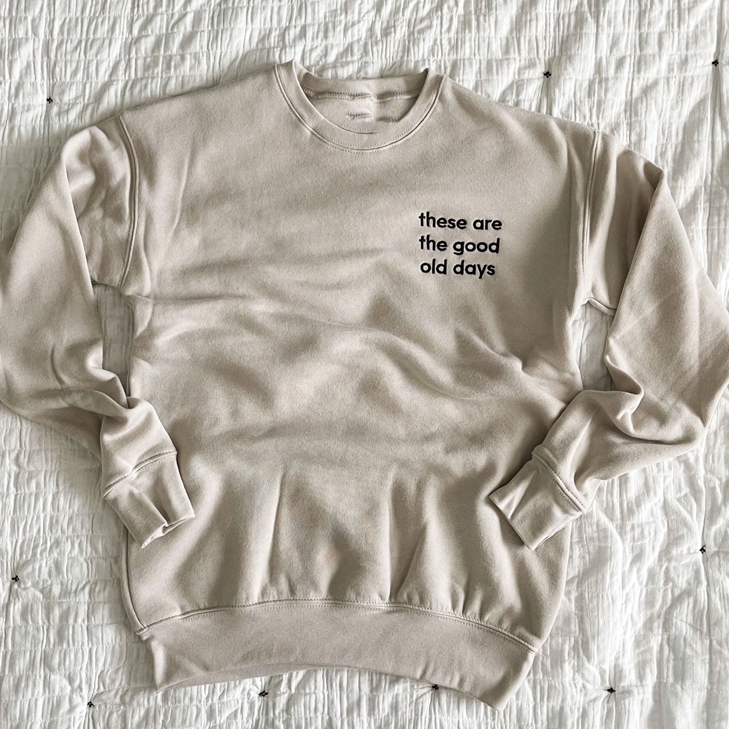 'These Are The Good Old Days' Embroidered Sand Sweatshirt