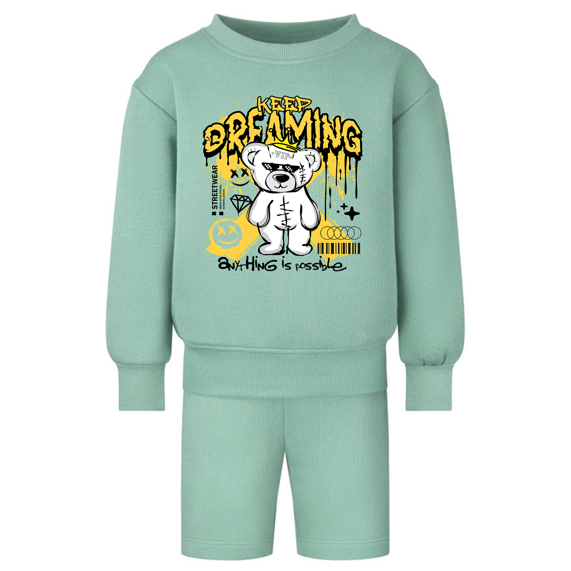 VIP Streetwear - Green Shorts & Sweatshirt KEEP DREAMING Set